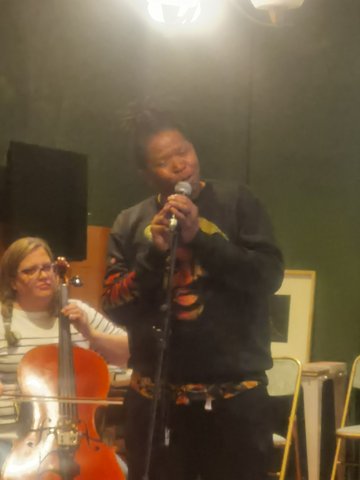You could say the shine was stolen by the last item of the day at dusk when the musical ‘collective creation led by Siyabonga Mthembu of The Brother Moves On and Shabaka and the Ancestors, joined by Solethu Madasa, Nicola du Toit, and Vuyo Tshwele. But what stole the show from the steal was an impromptu lament of Tembisa Hospital’s shameless thievery, ‘rapped’ by Tembisa-Hospital-born artist.