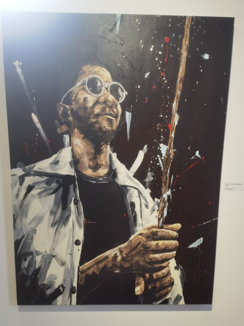 “You definitely know Sizwe, that I am quite sure. He will be here this afternoon coming from the East Rand where he hails from.” Curator Makgati Molebatsi said to me as she walked me around the exhibition at Art Mile in Rosebank. I was a little distracted as I kept on looking at the bar, wondering whether having a cup of coffee would assist in keeping the weather at bay. Right there.