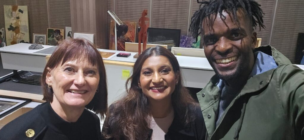 Over a four-week period, Sasol New Signatures Chairperson Pfunzo Sidogi, Sasol Art Curator Cate Terblanche, and Nandi Hilliard of the Association of Arts Pretoria visited eight regional collection points, joined at each by respected local art experts. “The regional judging is a critical component of this competition,” said Sidogi. “It allows us to engage with diverse creative voices across the country and uncover unique perspectives that may not always be visible in more centralised spaces.”