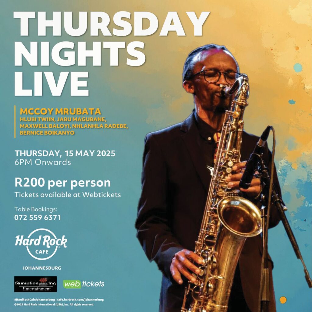 Back in South Africa: Hard Rock Café Concert McCoy’s first post-tour performance will be at Hard Rock Café on: 15 May 2025 featuring an all-star lineup: – Twiin Wele** (vocals/percussion) – Maxwell Baloyi (piano) – Sipho Mabena (bass) – Bernice Boikanyo (drums).
