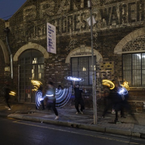 Taking place each evening from 19h00 the programme is free to the public, and is designed to activate the city and its audiences. Those commuting along Fox Street, for example, can stop and witness a short theatrical intervention, musical performance, or experimental light show.