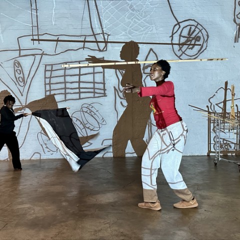 A few of the key activations for Site, Light, Action include a pop-up coffee-shop performance with pianist Jill Richards, shop-front shadow dances with artists including Thulisile Binda and Smangaliso Ngwenya, and Sello Pesa and Phala Ookeditse Phala’s Ngoana oa Nokaea Kubetu, a new iteration of their Nokeng yaKubetu series, performed in the Arts on Main Atrium.